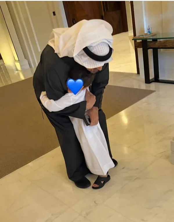 In the image, Rashid’s face is thoughtfully covered with a blue heart emoji — a gesture reflecting Sheikh Hamdan’s consistent commitment to safeguarding his children’s privacy.