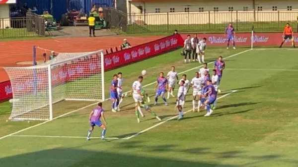Menit 38', Dewa United mendapat peluang lewat sepak pojok dan diambil oleh Messidoro, namun tendangan masih bisa dihalau.