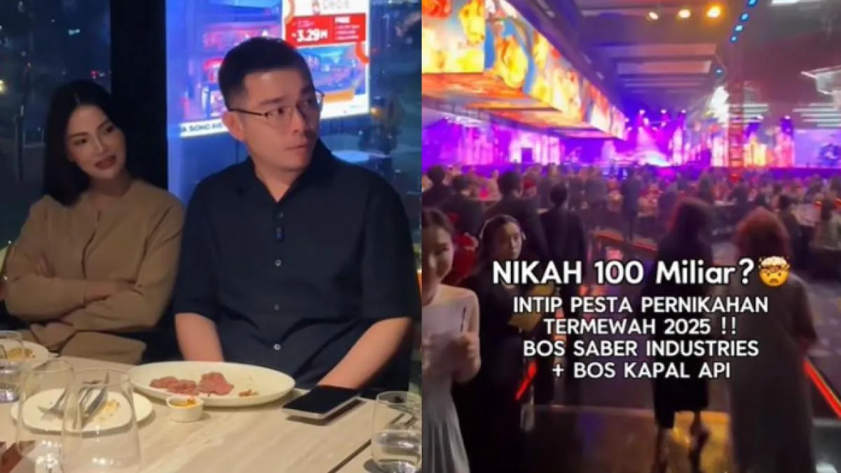 "Nikah 100 miliar? Intip pesta pernikahan termewah 2025! Bos Saber Industries + bos Kapal Api," tulis Andy dalam keterangan video.