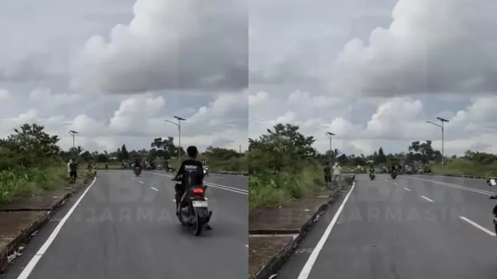 Beberapa warga tampak membantu mengatur kendaraan agar arus lalu lintas tetap lancar, mengingat jalur ini juga masih aktif digunakan sebagai akses pertanian.