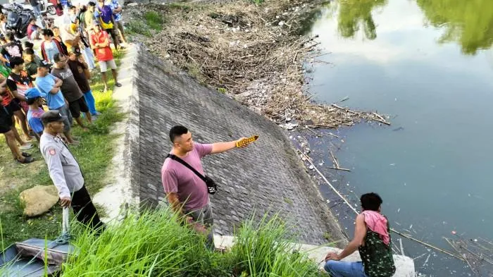 Sekitar 15 menit kemudian, korban berhasil ditemukan di dasar sungai oleh warga dalam kondisi sudah tidak bernyawa.