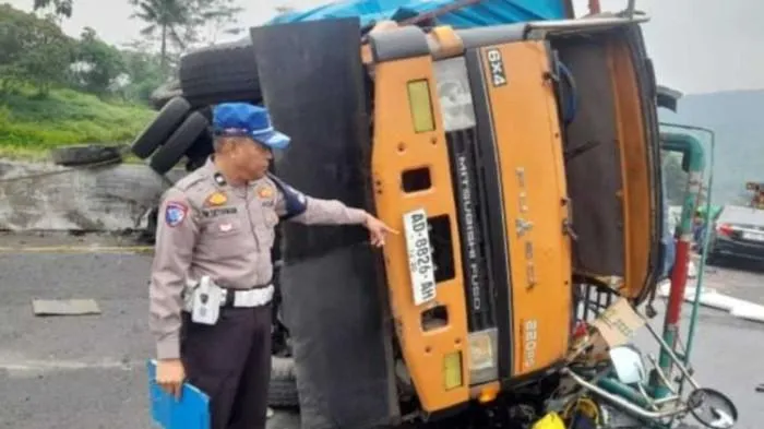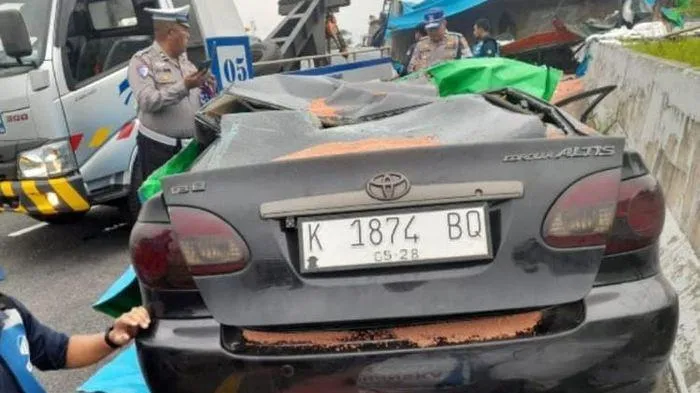Dalam kondisi tersebut, truk tronton menabrak pembatas jalan dan kemudian menimpa kendaraan Toyota Altis yang dikemudikan M.T.P yang saat itu melaju di lajur tiga.
