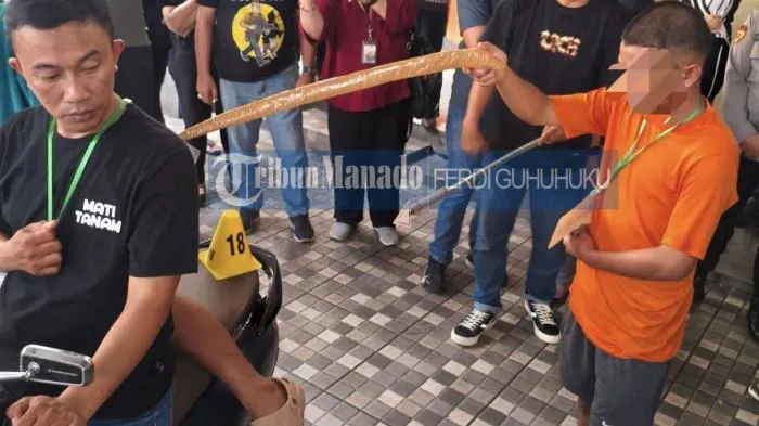 Rekonstruksi berlangsung di halaman belakang Polresta Manado, Sulawesi Utara, Selasa (27/1/2026).