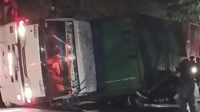 “Dari penyelidikan awal, pengemudi truk diduga berusaha menghindari kendaraan lain. Namun kendaraan dengan tonase sekitar 9,5 ton itu justru naik ke median jalan, terguling ke badan jalan, lalu menimpa sedan di sisi kirinya,” jelas IPDA Habib.