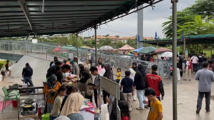 Ia menjual kue lontar seharga Rp 20.000 per potong hingga gorengan Rp 1.000-an per biji.