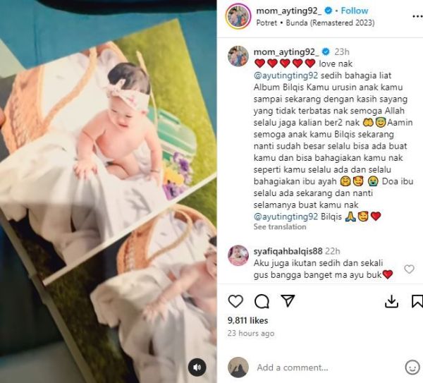 "Cuman bisa nangis.. semoga Bunda Ayu dan Bilgis sllu dlm lindungan Allah SWT...doa yg terbaik utk bunda dan Bilgis..bahagia sllu slmax," tulis akun @nur.ais1977