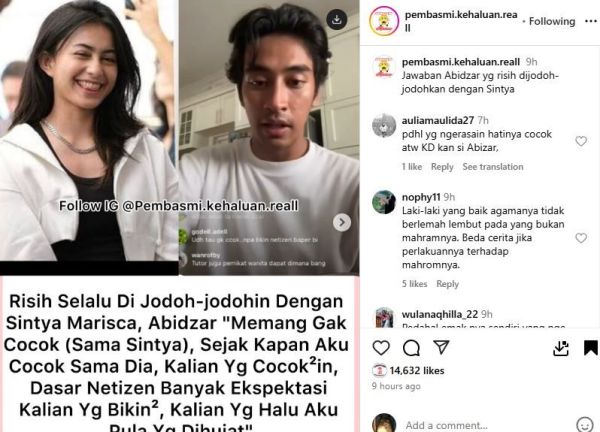 Tak berhenti sampai di situ, terdapat netizen yang menilai Abidzar tak cocok dengan Sintya lantaran memiliki temperamen yang buruk.